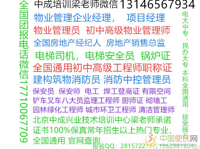 中成培训还报考:物业经理,物业管理员,物业总经理,物业项目经理证 、物业设施设备证 、物业管理师证 、电工证、焊工,登高证,有限空间
